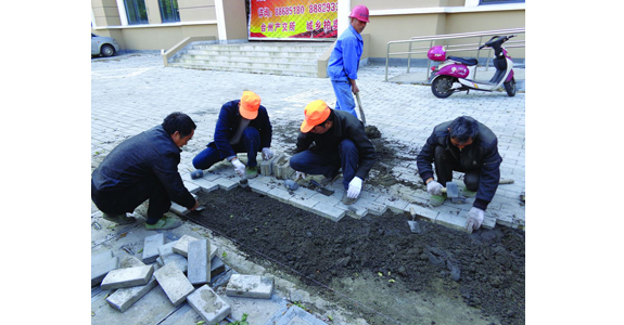 由于车辆碾压和自然环境的影响,我区不少路段人行道地砖不堪重负,有的四分五裂,有的松动下沉。为了改善道路环境,方便市民出行,近日,区住建局市政管理处的养护工人对人行道上破裂、松动的地砖进行维修。图为市政养护工人在橘乡大道更换地砖。
