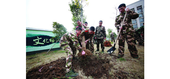 近日,台州边防检查站官兵积极开展“植树绿化美警营”活动。边防官兵种下一棵棵“愿望树”,为警营添新绿作贡献。