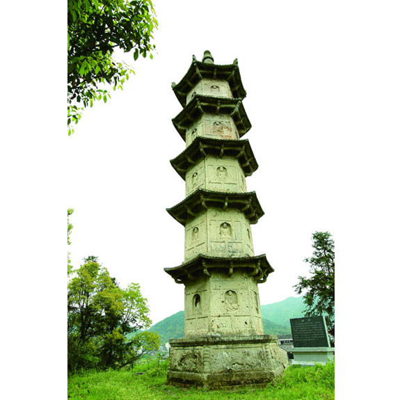 在茅畲乡大田山东坡上,有一座石塔,远远地看上去,像一支白蜡烛。它建于明万历四十四年(1616),为六面五级石斗拱出檐亭式顶结构石塔。石塔由基座、塔身、塔刹三部分组成,各级每面均刻有石佛像,底座浮雕各式动物纹饰。这里背山临溪,九溪上有大澧小澧二源,清澈可鉴。塔南有将军庙,祀文天祥及杜浒、牟大昌、牟天等抗元英雄。