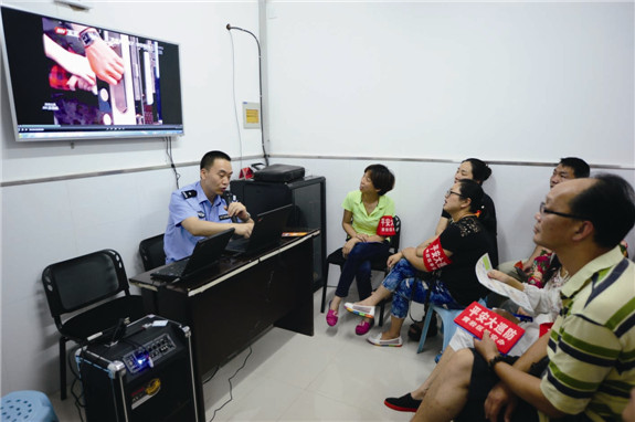 为激发辖区群众参与巡逻的积极性,学习更多的安全防范知识。城东派出所创新形式,以警务站为载体,每周开展安全防范讲座。图为近日,在辖区橘乡警务站开展的以锁具知识大认识、夏季入室盗窃巧预防、防电信诈骗三部曲为主题的讲座。