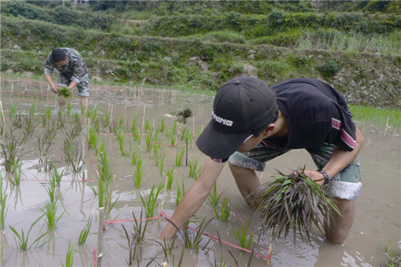 圈轮廓、分秧、插秧……连日来,由富山乡大学生村官和乡机关人员组成的“种田小组”正忙着种植彩色水稻。