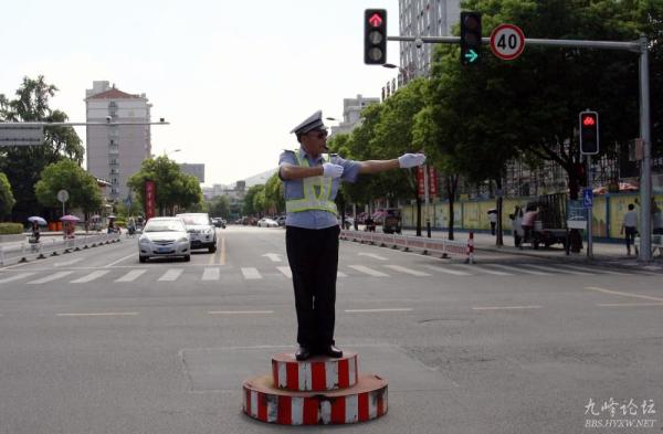 7月30日上午,黄岩城区县前街岗亭,执勤交警金云贵在红绿灯下指挥交通。连日高温,把大地烤得如蒸笼一般,连空气都是焦糊的味道。走上街头,置身在滚烫的路面上,呼吸着汽车废气和路面沥青的混合气味,透过镜头里交警的忙碌身影,我们读懂了什么是辛苦和极限、什么是奉献和忠诚!