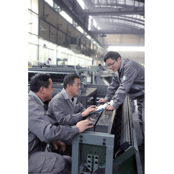 近日,我区精诚模具机械有限公司一线工作人员正在生产车间商讨生产流程中的注意事项。精诚模具机械有限公司是一家专注于中高端挤出平模头的开发与生产企业,目前拥有50多项的国家专利成果,其产品在国内中高端市场中的占有率已超过了70%。