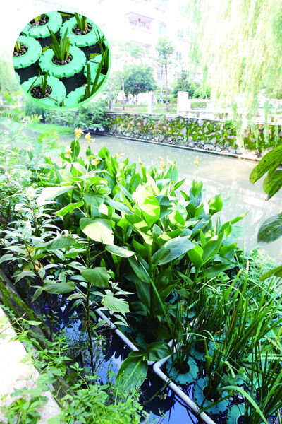东官河和新西河边的沿河景观带鸟语花香、生机盎然。能有今天的美景全靠运用生物治污的“人工生态浮岛”。“人工生态浮岛”是通过人工增氧、生物降解及植物修复等方式,消除河水黑臭,以净化水质、美化环境。浮岛上郁郁葱葱的美人蕉和黄菖蒲“喝”污水、“吐”清流,往日的黑臭河渐渐远去,河道环境得到了明显改善。