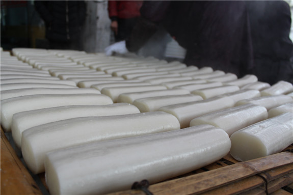 1月13日一大早,沙埠镇佛岭新村一家年糕作坊里就飘出了浓郁的糕香,加工棚里挤满了来做年糕的村民。尽管距离传统春节还有一段时间,但从去年12月份开始,就有村民拿着大米来做年糕了。作坊的师傅说,一年里他们最忙的时间就是年前这一个月,前来做年糕的村民多得“猛”,大家都在为过年做准备。