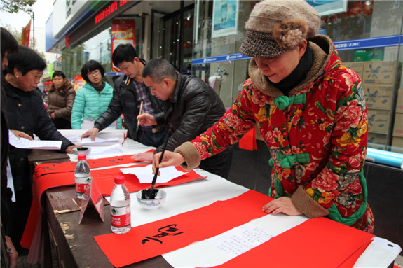 日前,在区党团员“暖冬行动”中,几位书法家为附近的居民送上新春的祝福。