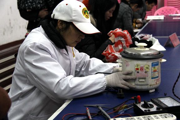 志愿者免费维修电饭煲。