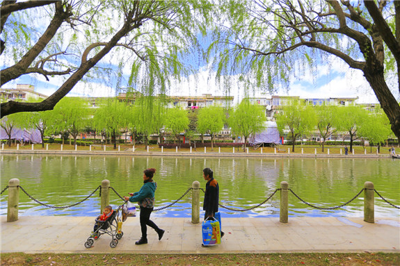 草长莺飞三月天,拂堤杨柳醉春烟。雨后放晴,南官河两岸的柳树发出嫩绿的叶芽,随着春风翩翩起舞。近日不少市民都走出家门来到公园踏青,或欣赏桃花绽放的春景,或在空地上尽情放飞风筝,或徜徉在灞柳依依的堤顶路边,感受春天的气息。