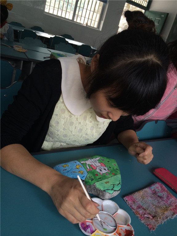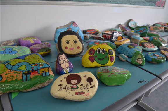 近日,记者在上郑小学看到大头儿子小头爸爸、樱桃小丸子、米老鼠……一幅幅可爱的图案被画在了小小的石头上,让人惊叹不已。原来,这是该校开展石头画创作活动一年多以来师生们的作品。石头画,即在石头上作画,以石当纸,点石成画,巧妙利用石头固有的形态、纹理、色泽、凹凸等自然属性,描绘创造艺术形象。“我们学校地处黄岩西部,是黄岩溪的源头,溪水里遍布各种大小、形状不一的石头,为师生创作石头画提供了丰富的石材。”上郑小学校长杨从宇说。他们因地制宜,把石头搬进了课堂,让石头画成为了全校师生的兴趣爱好。