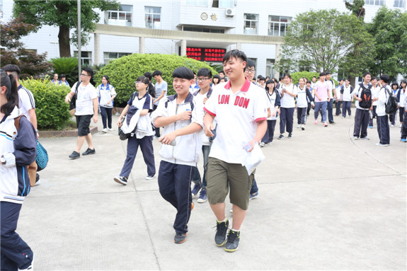 走出考场。