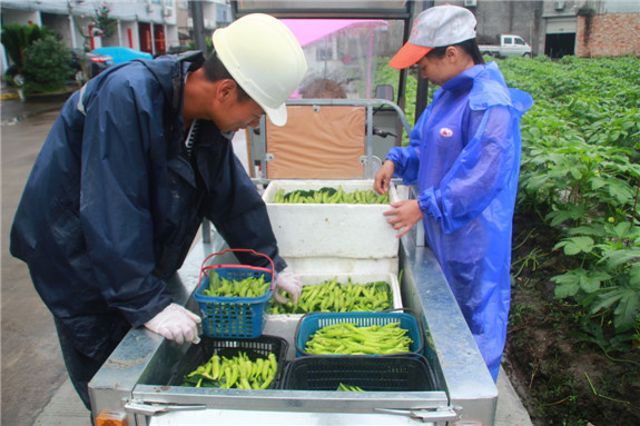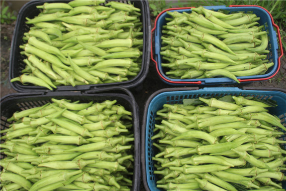 眼下是黄秋葵采摘的季节,连日的阴雨天气,农户纷纷冒雨抢收。新前街道剑山村蔬菜种植户蔡子才夫妻俩近日一直在基地里忙碌着,将一筐筐的黄秋葵打包装箱,不断运往农贸市场。今年,蔡子才种植的6亩黄秋葵,因为管理得当,长势喜人。他告诉记者,黄秋葵的全生育期一般为150天左右,从第一果的开采到盛果期,采收数量从少而渐多,预计平均亩产量可达到2250公斤。眼下,他们采收的黄秋葵外表鲜绿,肉质鲜嫩,市场价格一直保持在每公斤18元至20元之间,深受市民青睐。