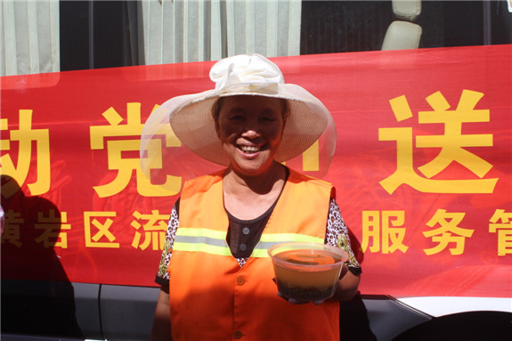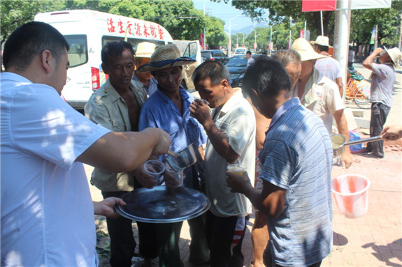 “大伙歇息下,来喝点绿豆汤解解渴,降降温。”最近,区流管局“送清凉流动车”走上街头,为一线劳动者捎去了夏日中的一缕清凉。流动车上,摆着三大桶由流动党员亲自熬制的绿豆汤。每看到街边有环卫工人,流动党员们就会为他们盛上一杯绿豆汤,并递上一条毛巾。此外,流动车还开进了工地,为奋战在一线的建筑工人们也送去了清凉。
