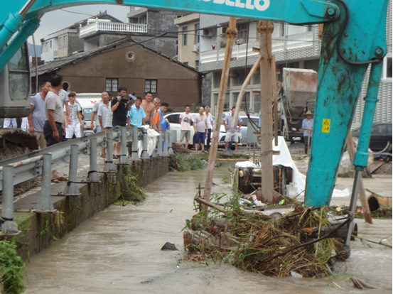 受到13号台风“苏迪罗”的影响,黄岩区头陀镇各村“水漫金山”,镇政府立即派出应急小分队队员,去各个村里排涝。