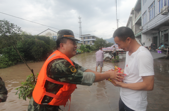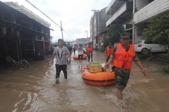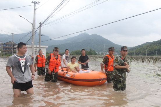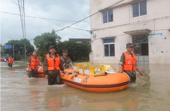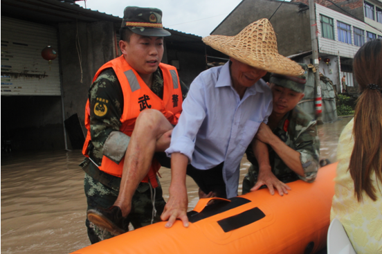 8月9日夜,受到13号台风“苏迪罗”的影响,头陀镇成为了一片汪洋。台州武警支队当晚出动15号人员,10点半出发,夜晚11点10分赶到黄岩区头陀镇,转移部分被困人员,翌日再次出动,将食品物资等送到了被困群众的手中。