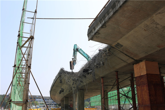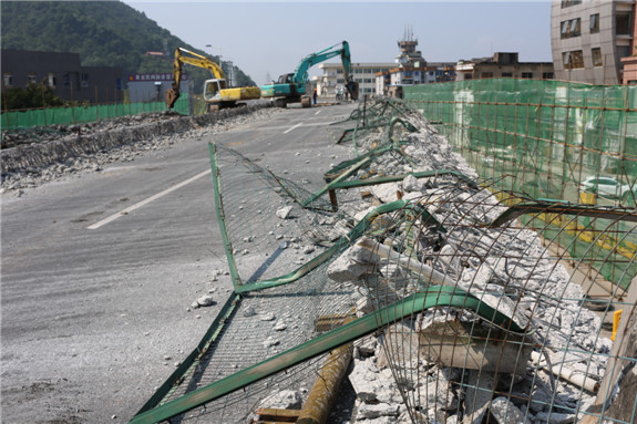 伴随着轰鸣的机械声,服务了黄城市民十余载的九峰部分高架桥正式“退休”。据悉,台州内环高架施工已进入关键阶段,根据规划,九峰高架桥北边从第1跨到第8跨的全部建筑都将被拆除,再按新的要求重建。在施工现场,即将和黄城市民告别的九峰部分高架和不远处一排已经完工的桥墩形成一道特殊的“景观”。
