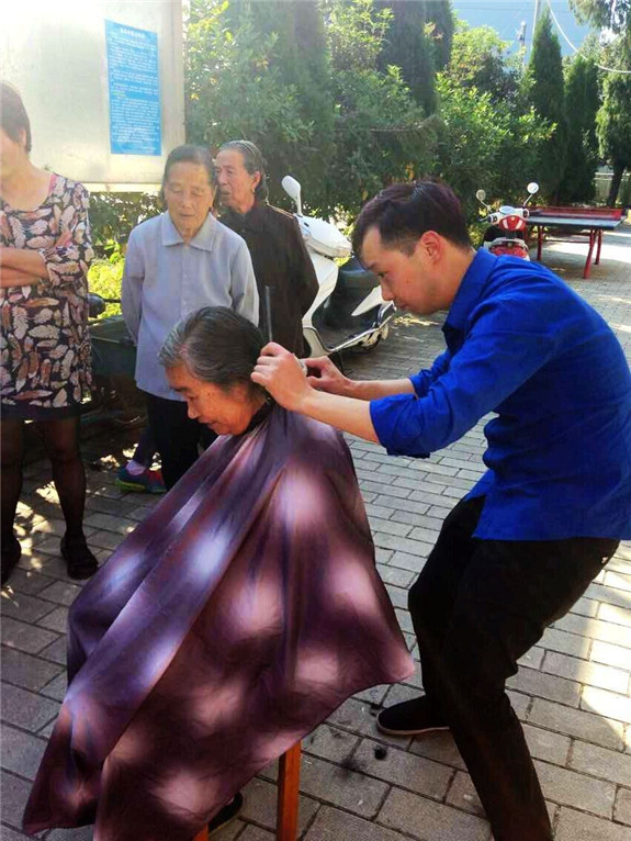10月16日上午,新前街道妇联、民政办在塔山村文化礼堂举办重阳节“献爱心”活动。工作人员为村里的低保户、残疾人员捐赠衣物和鞋子,并请来理发师为老人理发。