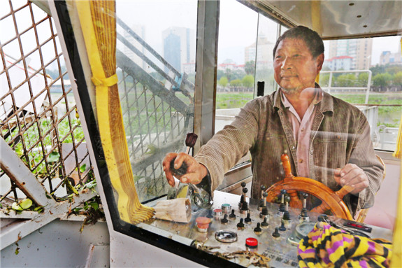 陈师傅从事打捞已有多年,近半个月,他几乎每天都在永宁江面上打捞水葫芦。“现在技术先进了,一艘船抵得上40名人工劳作。”望着江面上“轰隆隆”的机械神,陈师傅说,船一天不间断作业,一天可以打捞出30—40吨水葫芦。