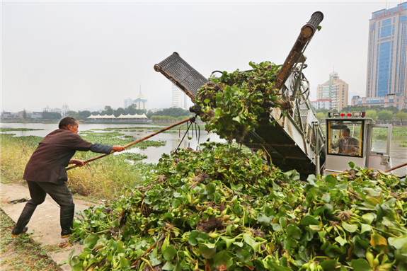 “一个上午能打捞25船水葫芦,每船约2吨。”在岸边打捞水葫芦的陈师傅告诉记者,每年这个时节水葫芦生长最快,几天的时间就能连成片。天气渐冷时,容易抑制疫苗生长,天气一回暖,水葫芦就疯长,繁殖很快。