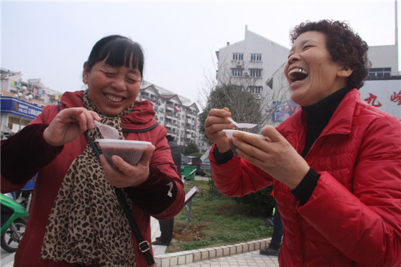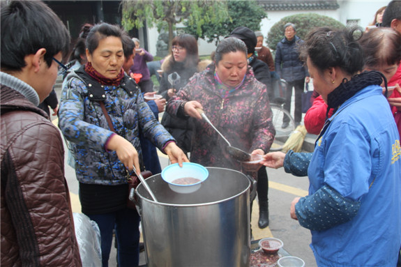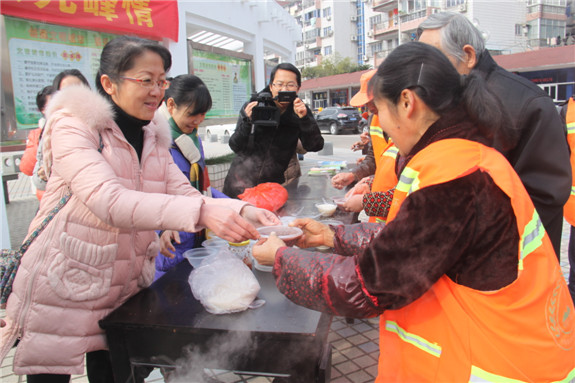 过了腊八就是年。近日,东城街道九峰社区和塔苑社区开展送腊八粥活动。社区工作人员花两个小时精心熬制了一大桶热气腾腾、香气四溢的腊八粥,在这寒冬季节送到社区居民的手中。活动现场,前来品尝的居民络绎不绝。“粥甜,心也甜,再给我添一碗!”环卫工人们喝着腊八粥,嘴角眼角满是甜甜的笑容。