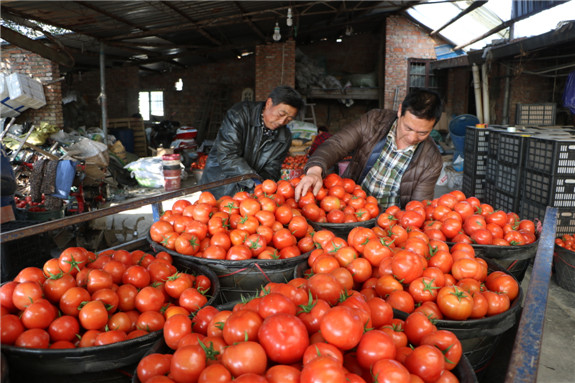 在院桥镇浦口杨村,记者远远就看见几个农户正高高兴兴地将装好的番茄搬上大卡车,现场忙碌有序。番茄种植大户陈继福的番茄基地里,成熟的番茄个长均匀,色泽鲜艳。“这批番茄是我去年国庆节期间种下的,正月天气太冷,很多地方的番茄都冻坏了,由于我们给大棚加了三四层塑料膜,番茄才勉强应对低温,但还是损失不少。”陈继福说,“物以稀为贵,相比往年,今年番茄的价格还可以,批发价一斤1.8元左右,订购和上门收购的人也很多。”目前,院桥镇七千多亩反季节无公害大棚番茄陆续被采收,这些番茄被销往宁波、杭州、上海等地,成了省内外市场的“抢手货”。