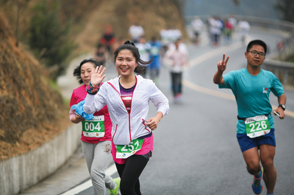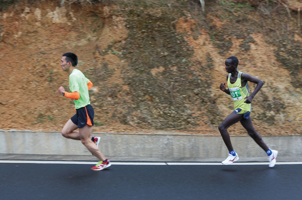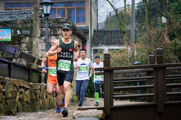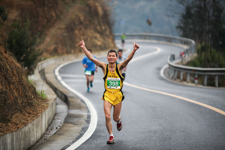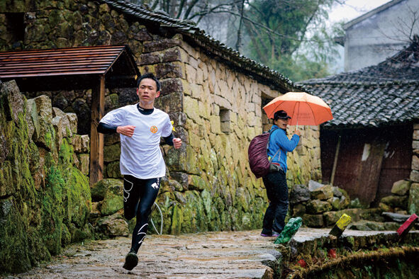 这是一段长21.0975公里的山地马拉松,串联长跑和越野两类比赛特点的一个新项目,参赛选手们不仅要适应山路的起伏不定,还要适应山体的蜿蜒曲折,这是考验所有选手的适应能力与临场应变。“过去时常在这条山路上巡查,查看公路附属设施有没有被破坏,现在自己就奔跑在这条走了无数次的山路上,这种感觉很棒。”“公路人”何戴立,此刻的感受却是为身为“公路人”的同事们感到自豪。因为太过熟悉,何戴立在奔跑时的每个转弯都控制的十分到位。(本版图片由黄岩长跑协会提供)