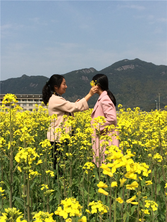 雨后初晴,艳阳和煦。在上洋乡白沙园村的农田上,百亩油菜花竞相开放,恍若金色的海洋。和风吹拂,好似“留连戏蝶时时舞,自在娇莺恰恰啼。”