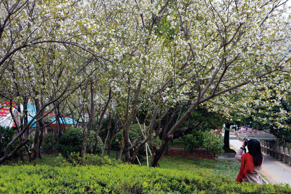 团团簇簇、重重叠叠,公园成了花的海洋,也就成了赏花人的必去之地。迎春花、红梅、粉樱,人们看不够,也拍不够。
