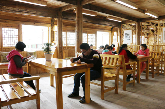 4月9日,恰逢周末,黄岩图书馆宁溪分馆里人来人往,有些在书架上找书,有些坐在一边的椅子上看书,有些在做作业,就连吧台也挤满了借书登记的人。据了解,该分馆有藏书约一万五千册,报纸杂志六十多种,自开馆以来吸引了众多读者前来借阅。