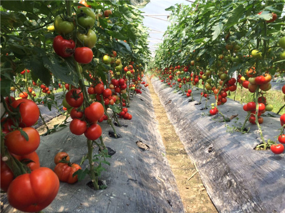 眼下正值番茄成熟上市的旺季,走进新前街道前洋村蔬菜种植大户郑仙西的种植基地,记者看到每一株番茄都用尼龙绳系着,笔直向上生长。番茄藤蔓上结了一大串果实,其中大部分西红柿已经成熟,满目新绿中挂满了火红的硕果。郑仙西正蹲在地上摘取个头饱满的番茄,看到记者,他热情地从箩筐里拿出几个西红柿,用毛巾擦了擦邀请记者品尝。他的身后是已经摘了满满三大箩筐番茄。今年,郑仙西种植的2.2亩大棚番茄长势喜人,碰上市场价也不错,他的脸上洋溢着丰收的喜悦。