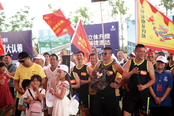 下午13时,龙舟赛正式开赛,只见永宁江面上,水花四溅,11支代表队分别通过两两比拼角逐决赛名次,“战况”激烈不已;而永宁江岸,游人如织,自发组成拉拉队,为选手们加油、助威,各种声音此起彼伏,响彻云霄。