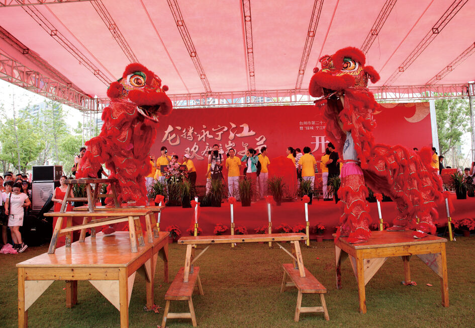 活动启动仪式上的舞狮环节。