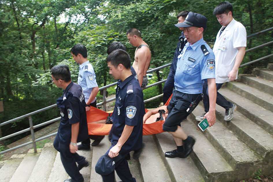 6月12日,浙江省台州市公安局黄岩分局110接到方山上有一名青年男子因为中暑昏倒的求助,城东派出所和巡特警大队立即组成营救小组上山对其进行营救。 在闷热的山林中来回奔波一个小时后,中暑的青年人被民警们用简易担架抬下山,送上了救护车。此时,现场的群众们发现,民警们早已汗流浃背。