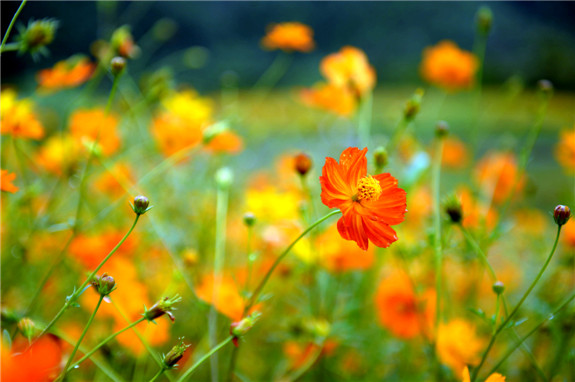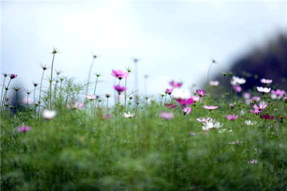 心醉格桑花田。前岸白鹭湾湿地里的格桑花田最近迅速走红,引来一波接一波的赏花人。各色格桑花次第盛开,整片湿地仿佛穿上了一件彩色的披肩,被肆意的色彩装扮,惊艳了时光。