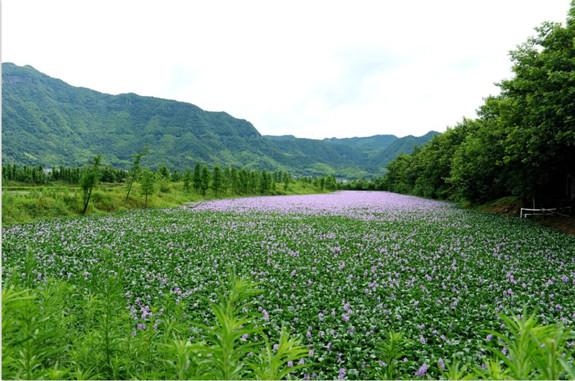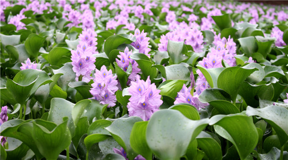 可远观不可近玩的凤眼莲。正值凤眼莲生长时期,西洋村桃园农家附近的水塘,是凤眼莲的天堂。眼下正值凤眼莲开花时节,从水上亭亭而起的,那一朵朵淡紫色的花洒满了一整个水塘,形成一片紫色的花海。