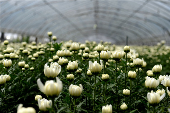 看菊花含苞待放。在西洋村鲜花基地里,菊花大多还是花骨朵。放眼望去,那一株株被绿叶衬托着的花蕾,让人心生期待。
