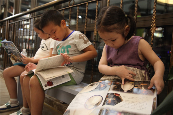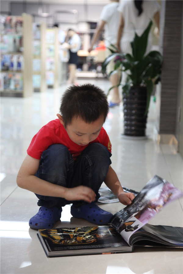 近日,黄岩书城吸引了无数的大人小孩在这里一起度假。走进书城,只见他们捧着各类书籍,看得津津有味,有坐在凳子上阅读的,有蹲在一角翻看的,更有直接盘坐在地上欣赏的,真是千姿百态,应有尽有。