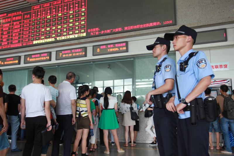 日前,我区民警全力加强台州火车站的安保工作,维持好站内站外的秩序,确保旅客安全、顺利地出行。