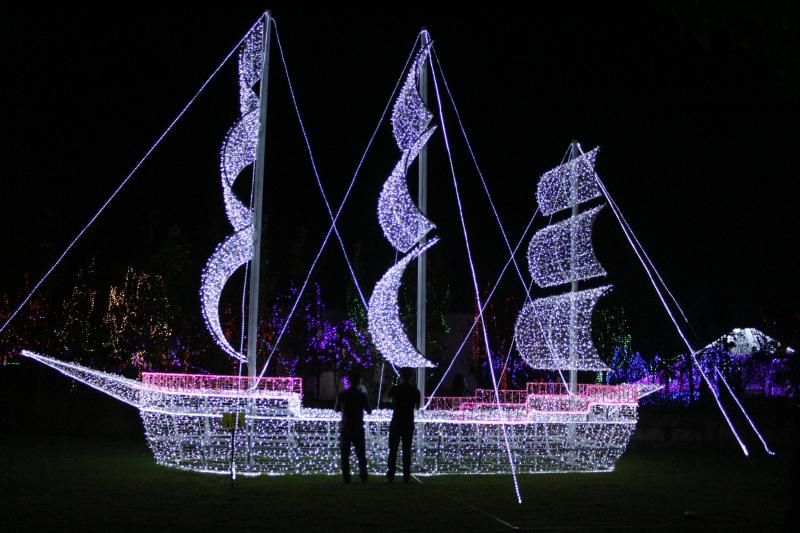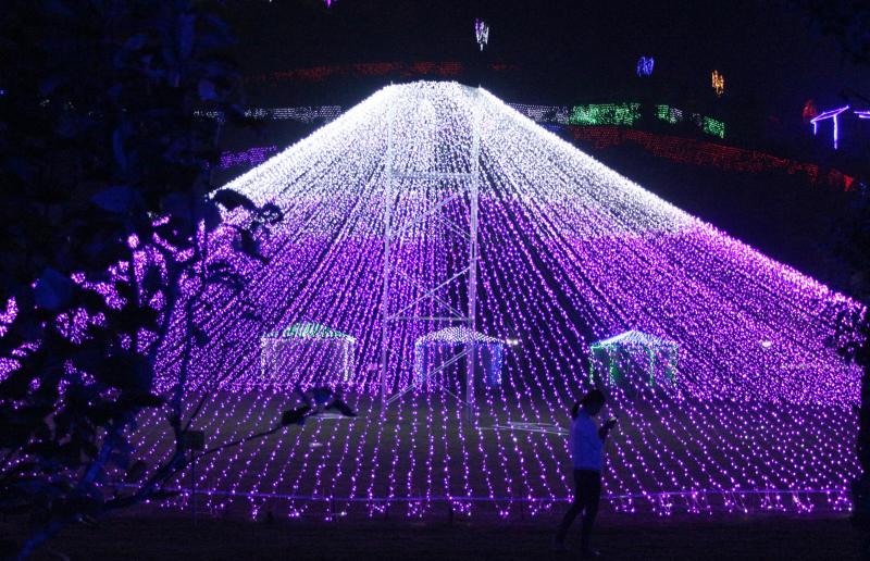 海豚、孔雀、喷泉、帆船、富士山……一串串五光十色的节日灯不仅构成了栩栩如生的动物,还描绘出了很多风景,赢得游客们阵阵惊叹。9月12日晚,北洋蓝美庄园首届大型灯光秀开幕,迎接即将来临的中秋节。天刚下过雨,但是仍然有许多游客来到这里,与光影相约,一览这惊艳的灯光。据了解,此次灯光秀预计会持续到十一月底。