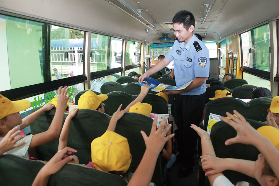 近日,黄岩公安分局城东派出所民警在辖区光明小学学生接送车上开展安全防范宣传。据悉,为进一步增强学生的安全防范意识,黄岩公安分局积极组织民警进校园,通过安全讲座、防范知识互动、发宣传资料等多种形式开展安全防范教育。