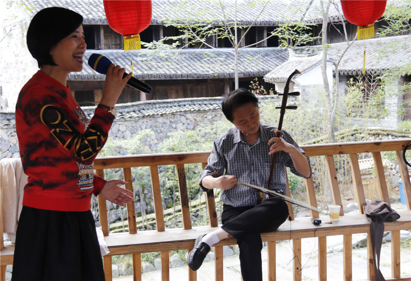 “金玉良缘将我骗,害妹妹魂归离恨天。到如今,面不知何处去,空留下,素烛白帷伴灵前。”近日,在乌岩头文化礼堂的乌凤阁上,一群人聚在一起唱越剧,好不热闹。他们被这里的美景所吸引,相约而至,唱在山水之间。“自从文化礼堂建立以来,就引来了很多人,除了唱越剧的,还有拍写真、拍电影的。”宁溪镇宣传委员周仙红告诉记者。
