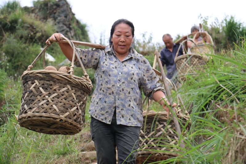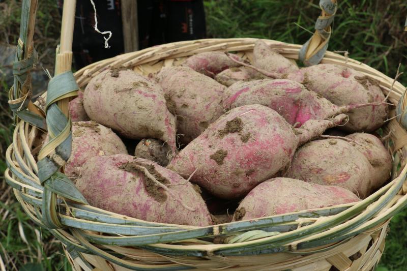 近日,宁溪五部半山村三百多亩的半山省级红薯示范基地里硕果累累。碧绿的番薯地里,村民们扛着锄头,小心翼翼地挖着“金疙瘩”。一上午的工夫,个个满载而归,挑着一筐筐沾着泥土芬芳的番薯喜上眉梢。据了解,村民在五部半山村种植的番薯更甜、更香、更糯,在市场上很畅销。