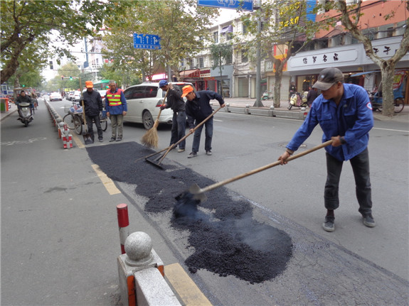 连日来,区住房和城乡建设局市政管理处的养护工人抓紧修复城区破损路面。据悉,为助力全区文明创建工作,保证市民出行畅通,该处将加大对城区路面的巡查力度,积极修复破损、下陷的路面。