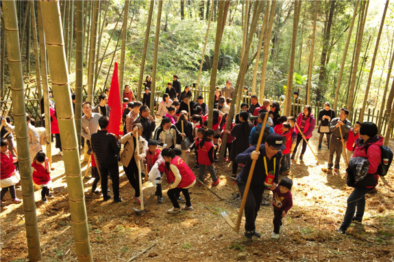 穿梭在上洋沈岙村的林海之中,踩着铺满谷皮和秸秆的松软土面上,一群孩子背着竹篓,提着笋铲、锄头,在笋农的指导下,寻找着冬笋。“挖笋看起来简单,可要想挖到一株完整的笋,还真不是件容易的事。”不少“小笋农”坦言,挖笋不仅是个力气活,还要懂技巧,有耐心。