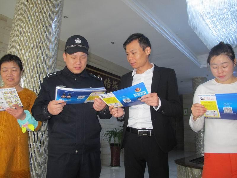 针对年末侵财案件增多,1月6日,院桥派出所民警深入辖区宾馆、网吧等场所开展防范“盗抢骗”宣传活动,切实提高市民和场所工作人员的“心防”意识。