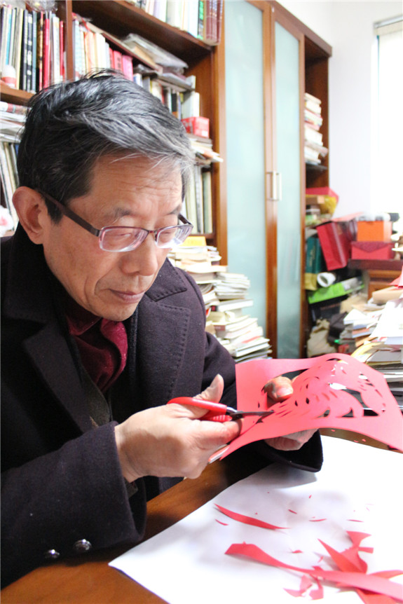 “这是我们黄岩的蜜橘。”我区民间艺术家沈雷指着一张剪纸作品四角的椭圆形图案告诉记者。每年过年前,沈雷都会创作生肖剪纸作品迎接新年,今年也不例外。一张四四方方的红纸中间,一只公鸡作啼叫状,栩栩如生;四角上有一些椭圆形的图案,正是沈雷所指的黄岩蜜橘。