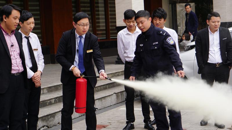 连日来,城东派出所组织民警到辖区足浴、桑拿、KTV等场所,对从业人员进行消防安全知识再培训再教育。图为民警正在辖区一足浴店指导从业人员如何使用灭火器。