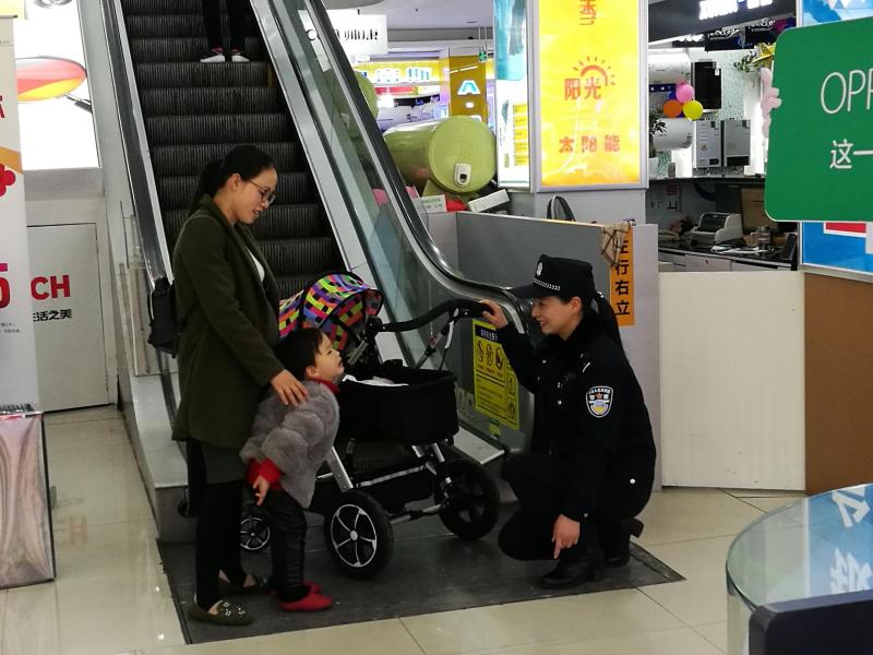 “小朋友,坐推车上下电梯很危险哦!”近日,城东派出所民警来到辖区人员密集场所内,对市民上下电梯安全进行防范宣传,教会市民如何安全乘坐电梯、如何使用紧急制动按钮等小知识,提高市民的自我保护和安全防范能力。