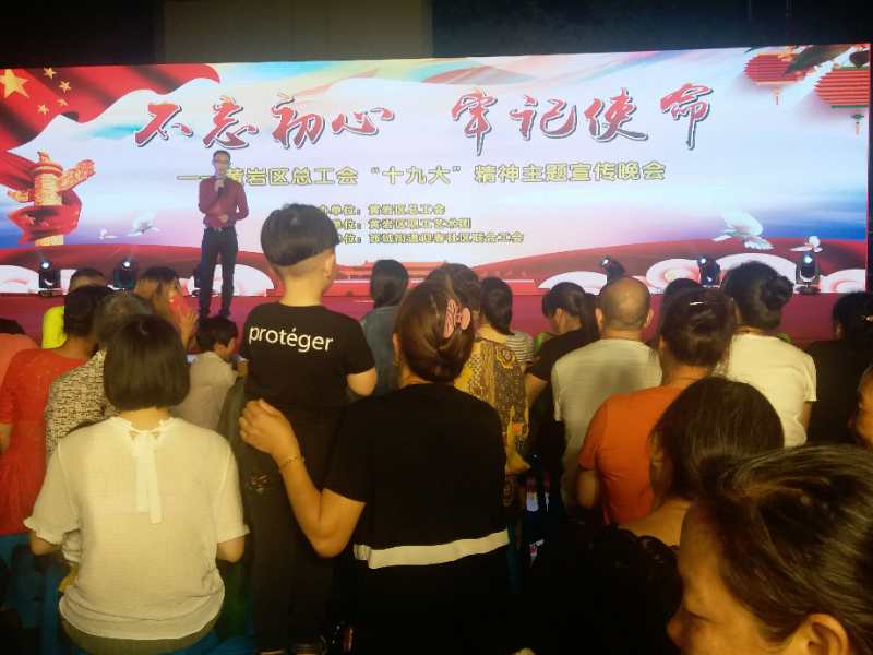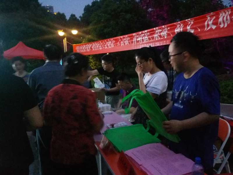 5月22日晚,黄岩区总工会“十九大”精神主题宣传晚会《不忘初心、牢记使命》在迎春社区演出,节目内容包括法律进社区、反邪教、禁毒等。迎春社区为配合这次活动,深入开展社区反邪教工作,组织反邪教的图片展览,分发反邪教宣传小册子100余份,并给观众发放反邪教纪念品环保袋、围裙等,使这次“十九大”精神主题宣传晚会活动内容更加丰富多彩。