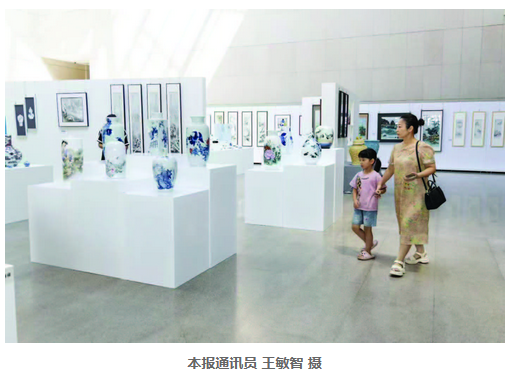 走进“东方雅韵”展厅,柔和光线下,一件件陶瓷作品格外吸睛。清雅中透着温润质感,明艳中色泽鲜亮夺目。作为资深陶瓷收藏与鉴赏爱好者,市民莫康义驻足在瓷瓶前,目光专注地细细欣赏。