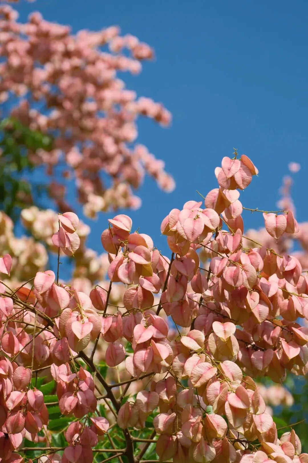 Known scientifically as Koelreuteria bipinnata var. integrifoliola and locally as "Lantern Tree" (for its lantern-shaped fruit clusters) or "Money-Shaking Tree" (a folk name symbolizing prosperity), this species undergoes a striking transformation: its golden petals fall to reveal capsules transitioning from pink to russet. The three rounded "lanterns" cluster together, and "Luanhua"—a term ancient scholars used for this tree’s blooms (literally "Luan Blossom," referencing its elegant floral appearance)—was celebrated for its brocade-like petals and jade-like fruits. It blooms from August to September, with its fruiting period extending into autumn and winter—a unique feature in which flowers and fruits coexist, offering a prolonged spectacle.